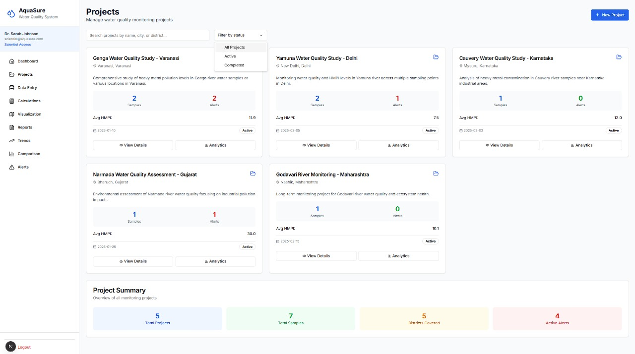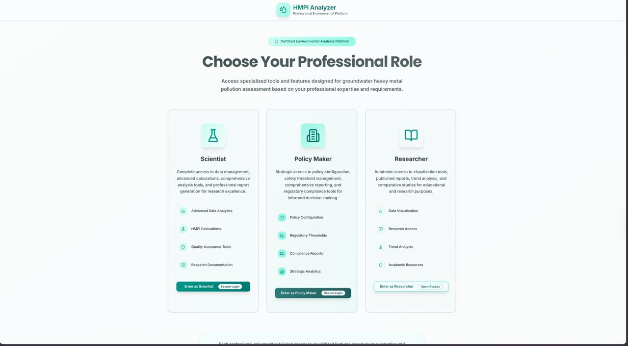 AquaSure is a scientific tool designed to calculate the Heavy Metal Pollution Index (HMPI) in water samples. The platform helps researchers, environmental scientists, and policymakers analyze water quality by processing heavy metal concentration data and producing pollution index scores.